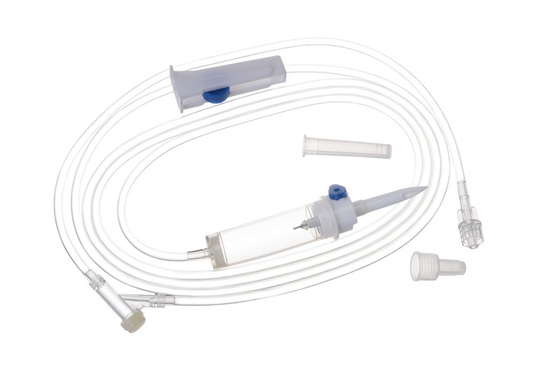 インフュージョンセット: このセットは,通常静脈注射 (IV) による患者体への液体薬剤または溶液の投与に使用されます.安全で制御された流体投与経路を提供します..