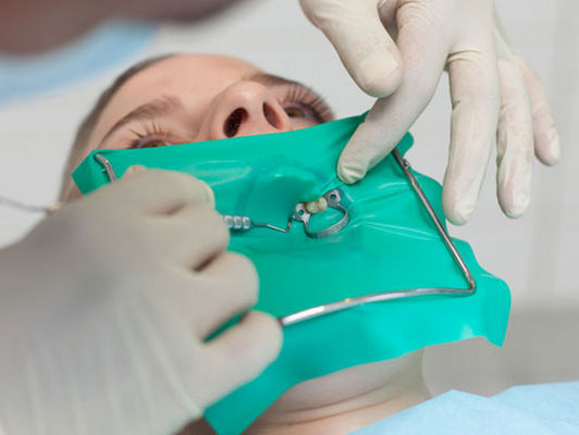 歯科医 は 特定の 歯科 治療 や 手術 の 間 に ゴム の 防水 板 を 用い ます.その 主要 な 目的 は,患者 の 歯,歯周 歯,口腔 の 組織 を 隔離 し,唾液,血,処理エリアに侵入する他の汚染物質乾燥し清潔な作業環境を維持し,視力や労働条件を向上させます.