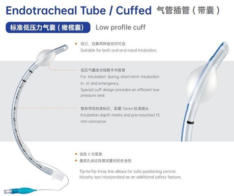 Low-Profile Cuff for Enhanced Sealing: The low-pressure cuff design is engineered to provide a more efficient seal while minimizing the risk of airway damage. This feature is crucial in maintaining proper ventilation without unnecessary trauma to the patient's airway, making it suitable for short-term intubation in both ICU and emergency settings.