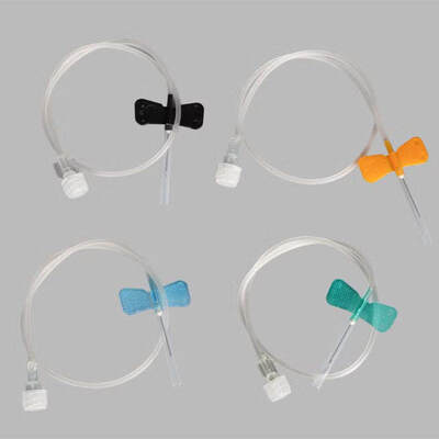 ウィングド輸液セット(「バタフライまたはスカルプ静脈セット」とも呼ばれる)は、主に静脈穿刺に使用されるデバイスです。皮下注射針、2つの両側柔軟なウィング、柔軟な小径透明チューブ(長さ20~35 cm)、コネクター(メス型ルアー)で構成されています。サイズは8~24G(22Gと23Gが最も一般的です)。